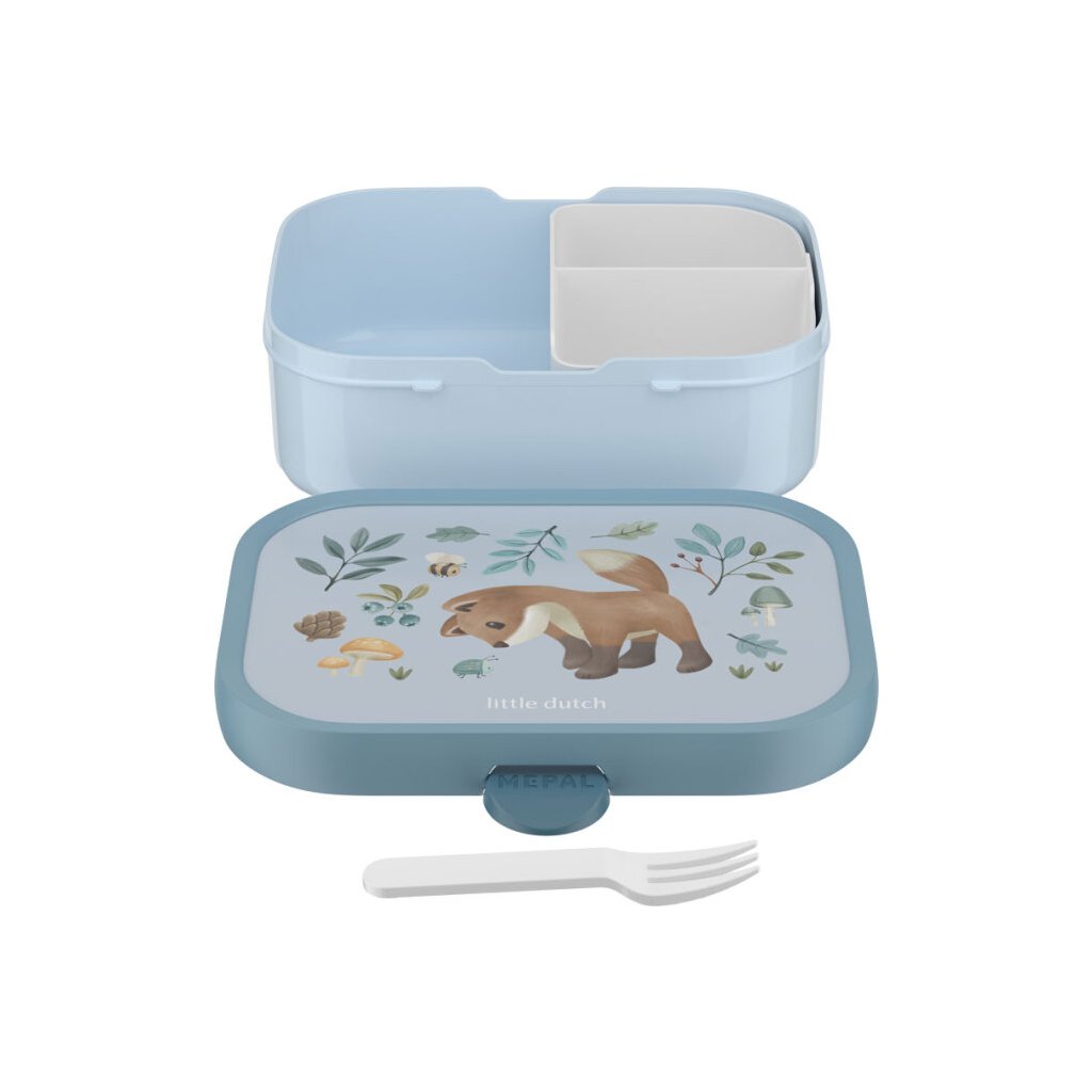 Praktický desiatový box ponúka možnosť rozdelenia na tri priehradky na oddelenie jednotlivých častí uloženej desiaty. Súčasťou boxu je aj malá vidlička, ktorá je ideálna na napichovanie kúskov ovocia či zeleniny. Zacvakávací uzáver je zárukou bezpečného uzavretia obsahu boxu.